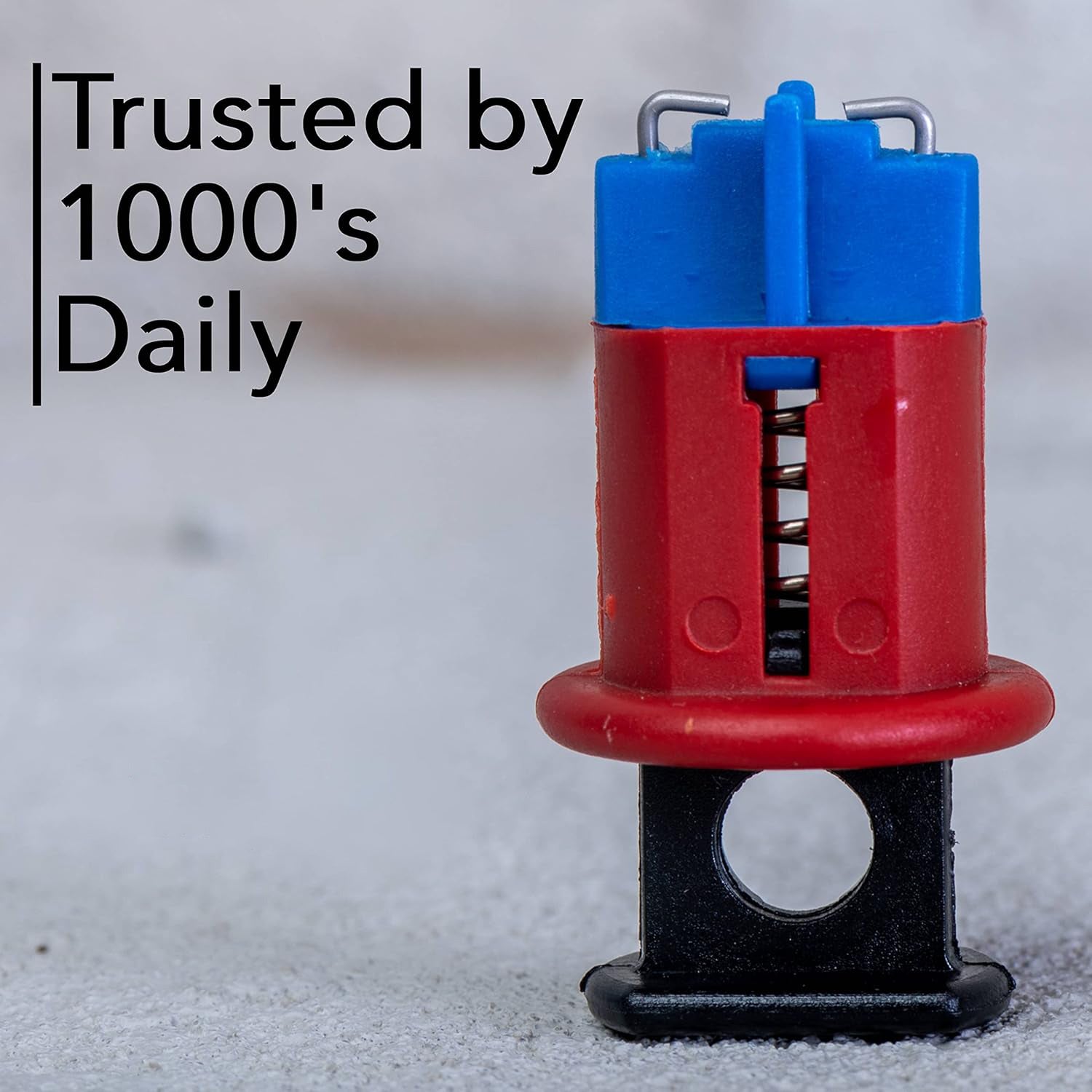 This precision-engineered circuit breaker lockout device is designed to isolate hazardous energy and prevent unauthorized access. With a push-button mechanism and inward pin design, it fits toggle spacing of 1/2 inch or smaller — ideal for single and multi-pole circuit breakers in industrial and electrical safety applications.