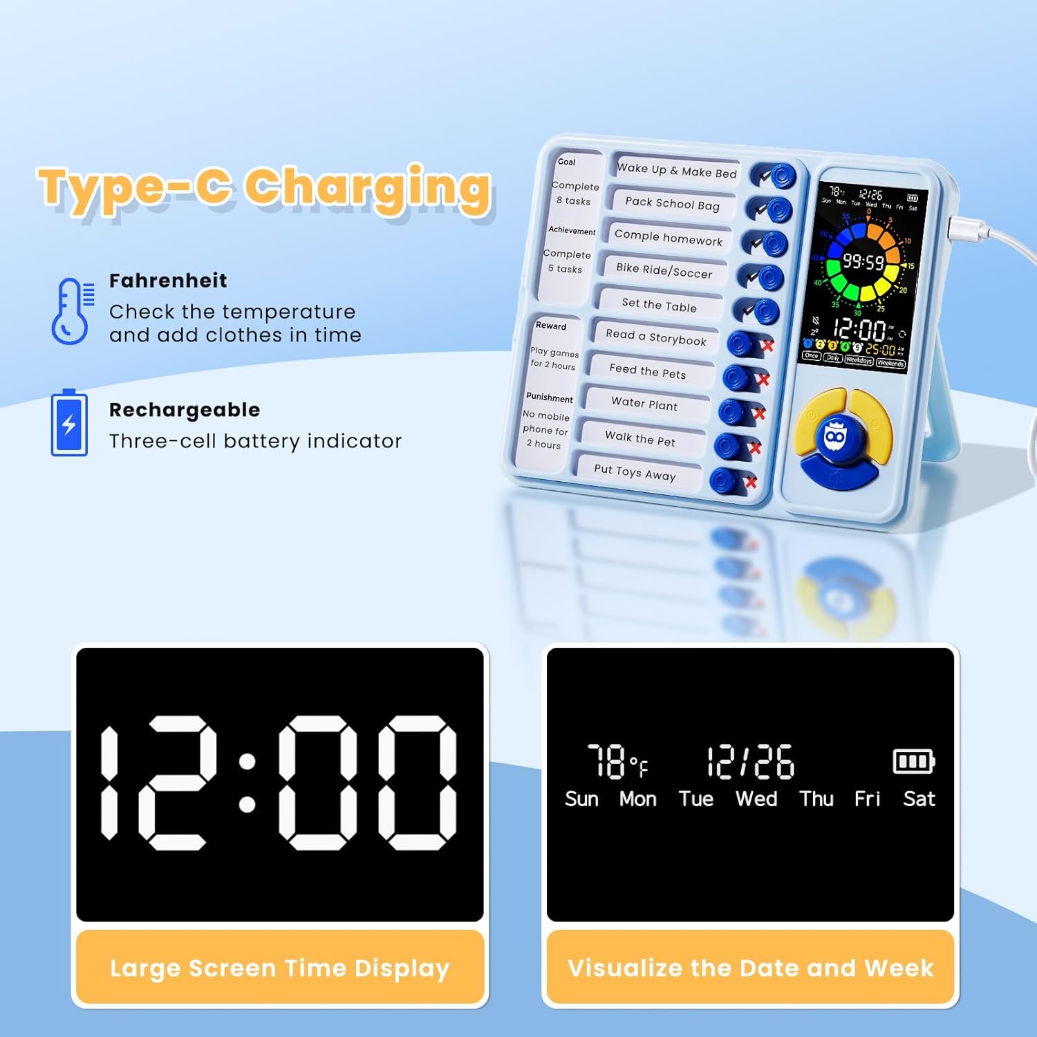 Boost focus and productivity with the 5-in-1 Visual Timer with Chore Chart – Silent Task & Pomodoro Timer for Kids & Adults! Designed with a clear, visual countdown and versatile functions, this tool helps manage time effectively, build good habits, and support focus for both children and adults.