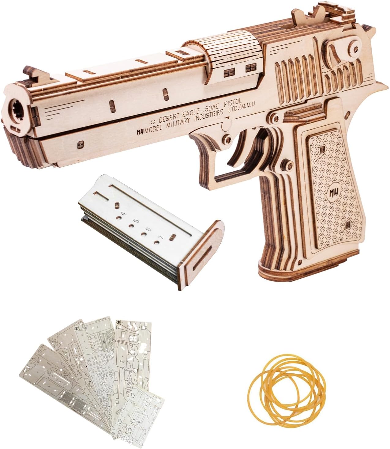 Adult Wooden Puzzle Desert Eagle Rubber Band Gun – 3D Metal & Wooden Model Kit