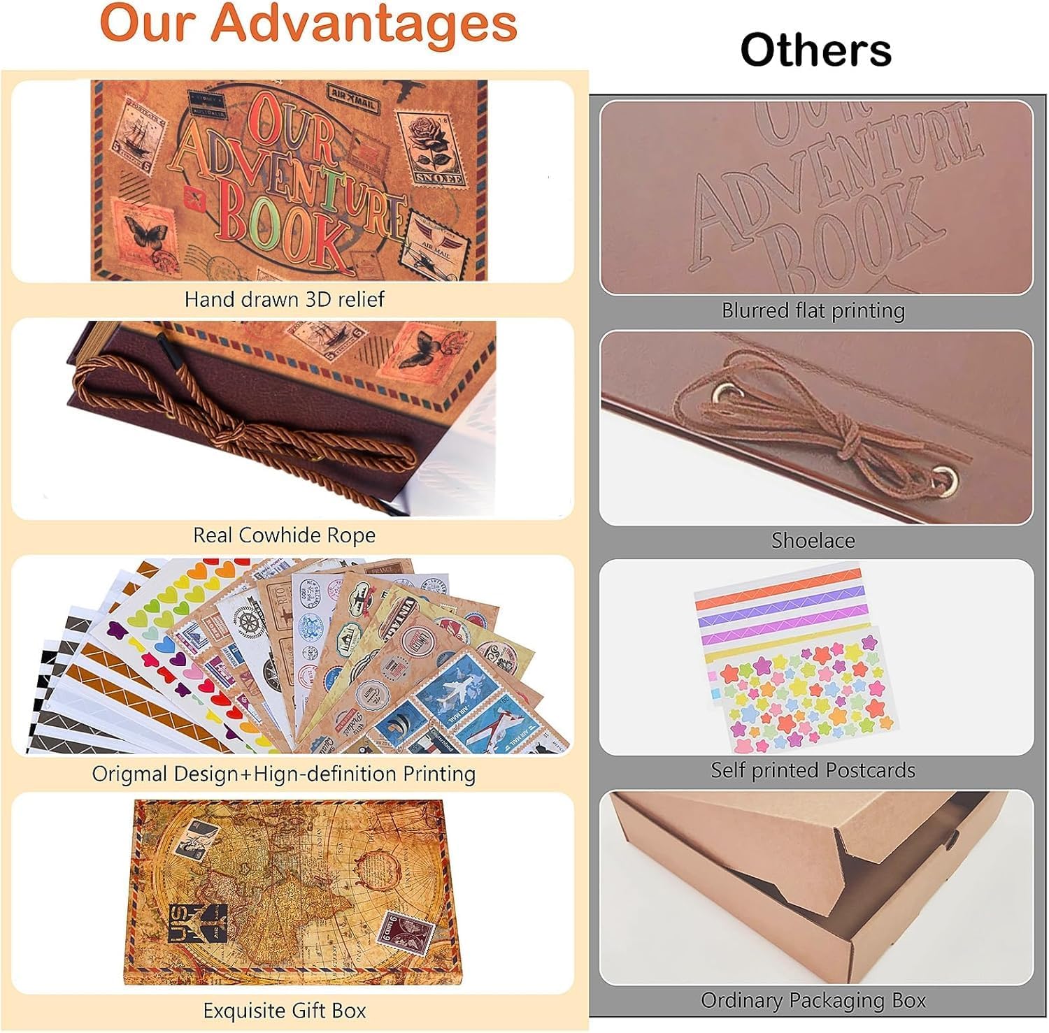 3D embossed cover and vintage-themed, fade-resistant kraft paper pages. Each page features unique designs with a classic lock engraved βAdventure Book.β