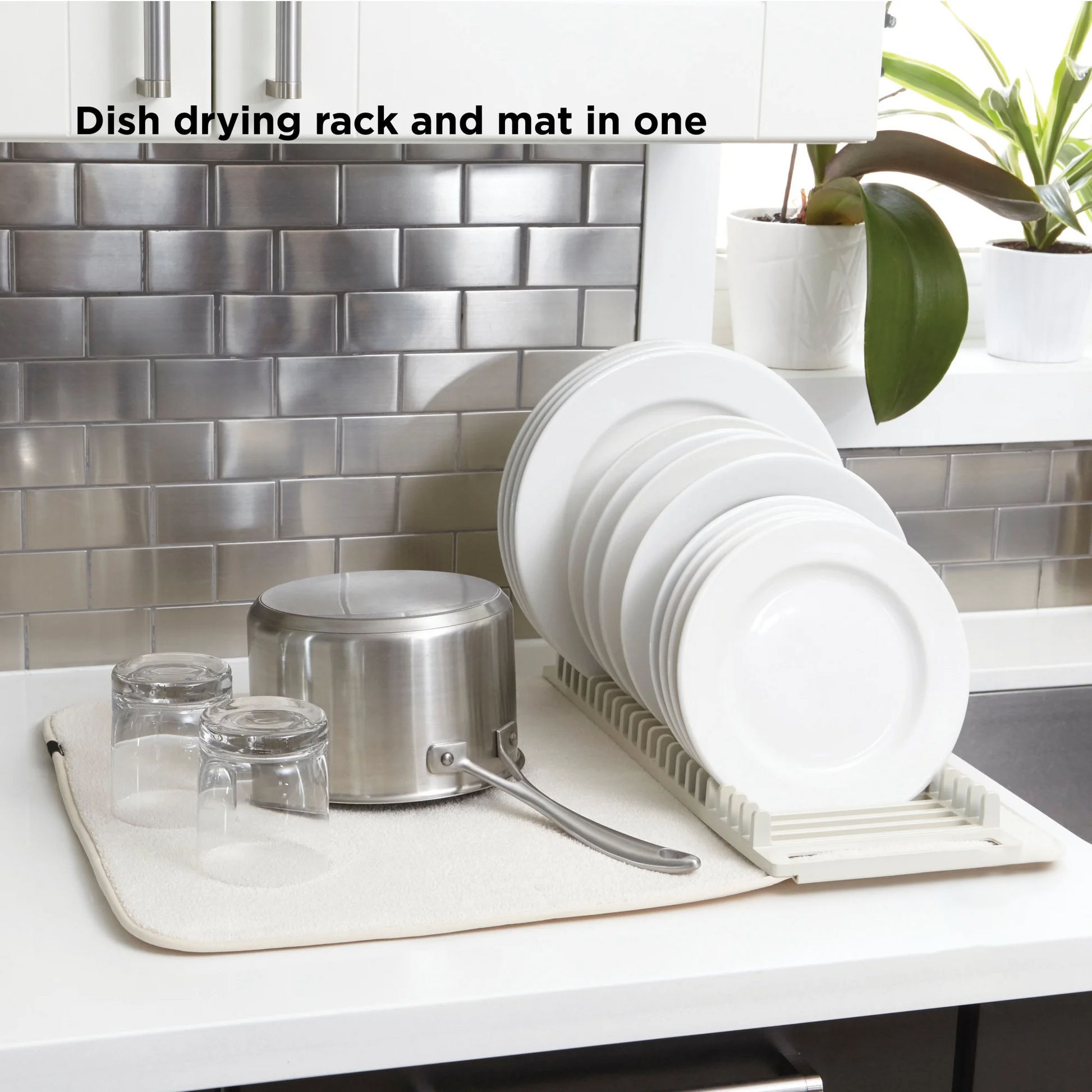 š All-in-One Dish Drying Mat ā Compact Kitchen Rack with Utensil Holder & Glass Stand