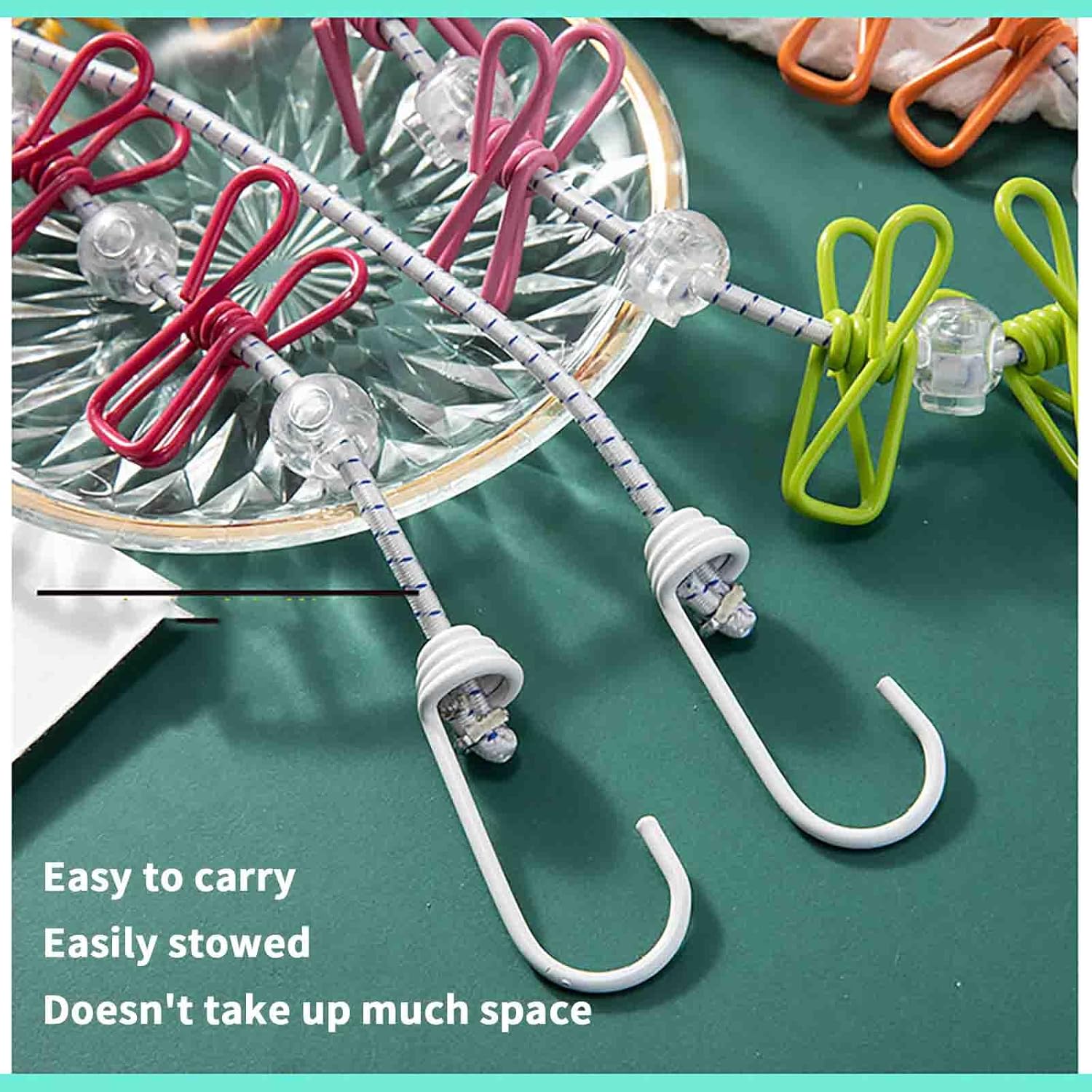 💡Clothesline features sturdy anti-slip hooks and elastic cords, making it ideal for various indoor and outdoor environments. It’s easy to carry and store, providing a perfect solution for drying clothes.