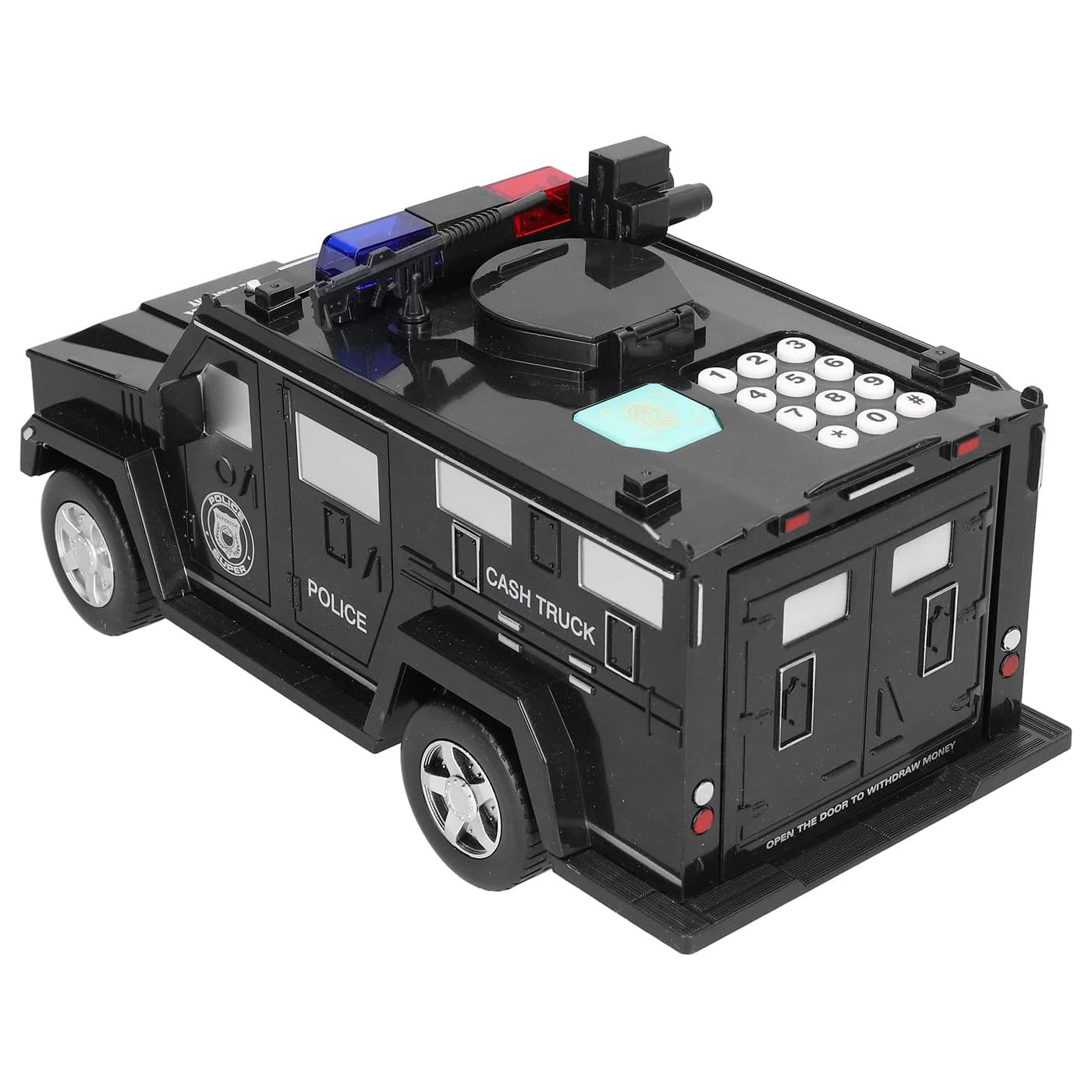 A fun and secure armored car piggy bank that combines saving money with play. Designed for kids, it encourages good financial habits while serving as a cool toy with lights and sound.