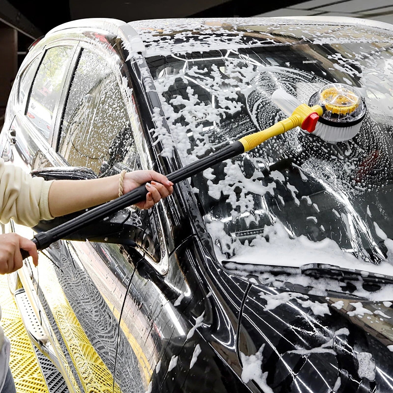 Simplify your car washing routine with this automatic rotary foam brush. Featuring a 360° rotating head powered by water pressure, soft chenille material, and an integrated foaming system, this multipurpose cleaning mop ensures a thorough and scratch-free clean for cars, windows, and more.