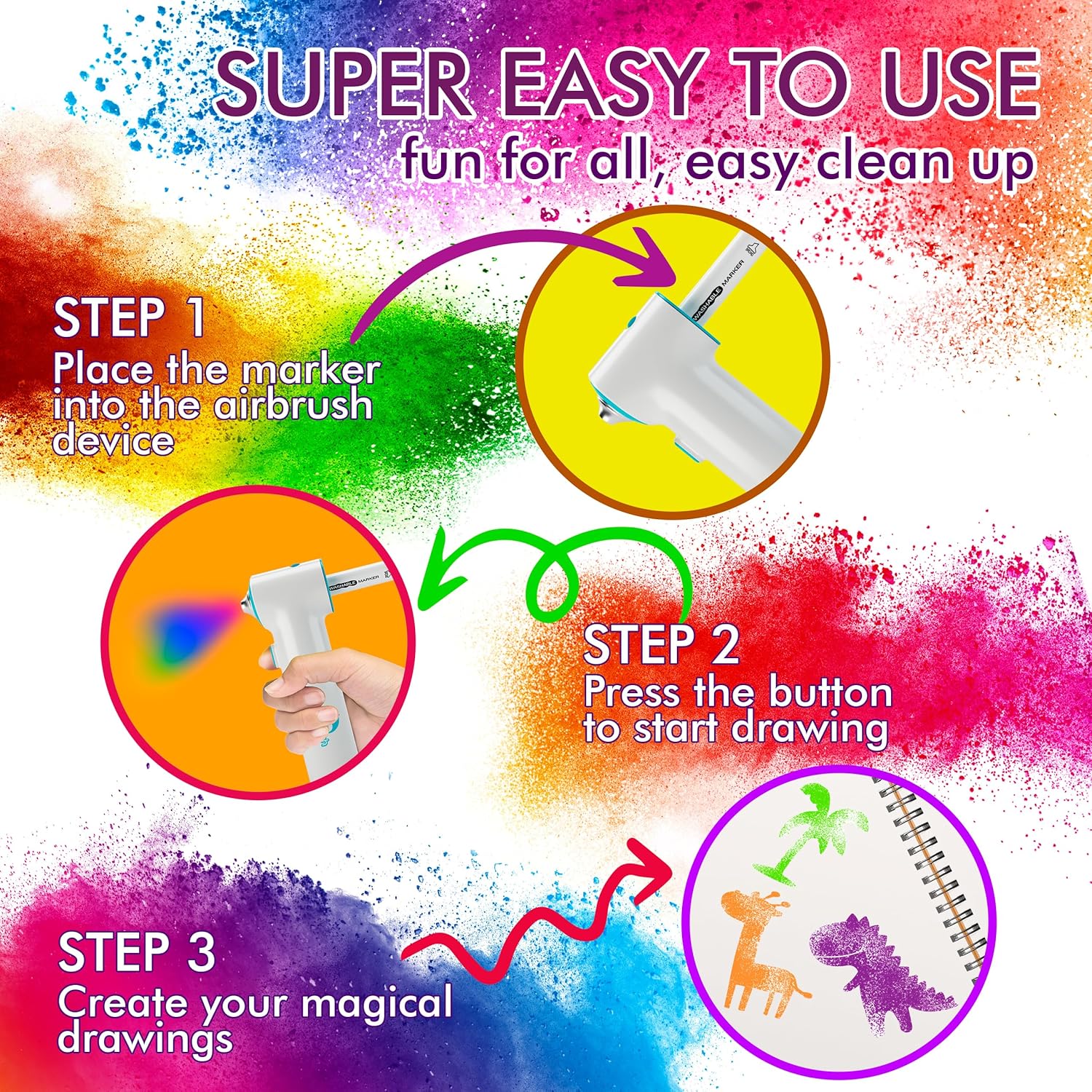 Children's Airbrush Marker Set β Creative DIY Art Kit with Washable Markers & Stencils