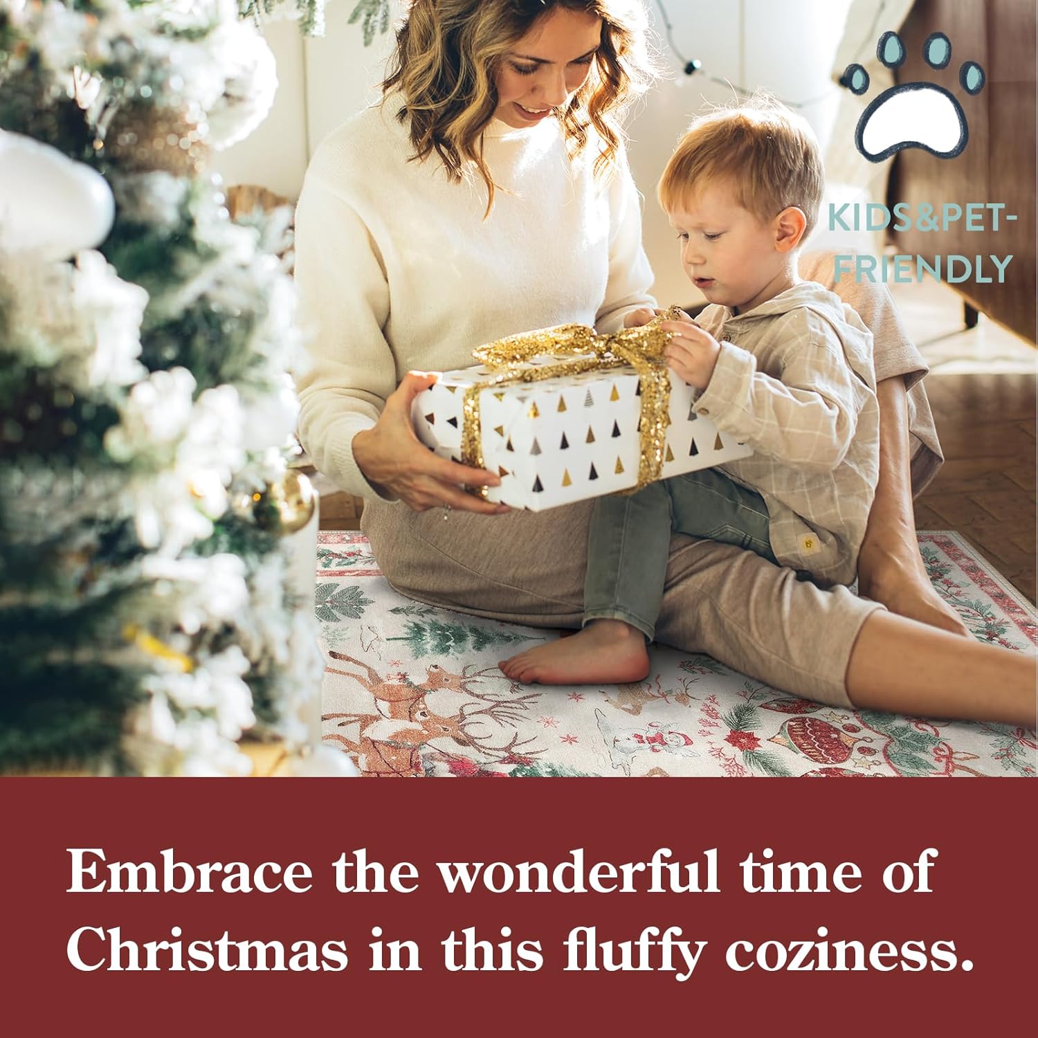 🎄 Christmas Runner Rug 2x8 Beige – Washable Non-Slip Carpet for Hallway, Kitchen, and Bathroom