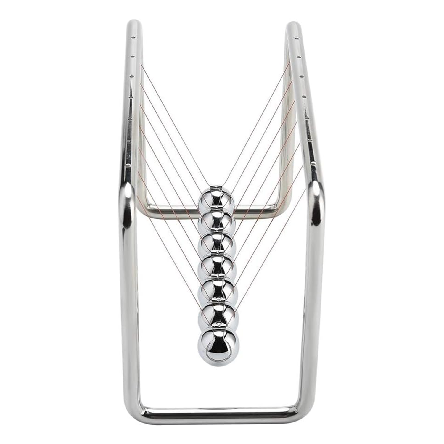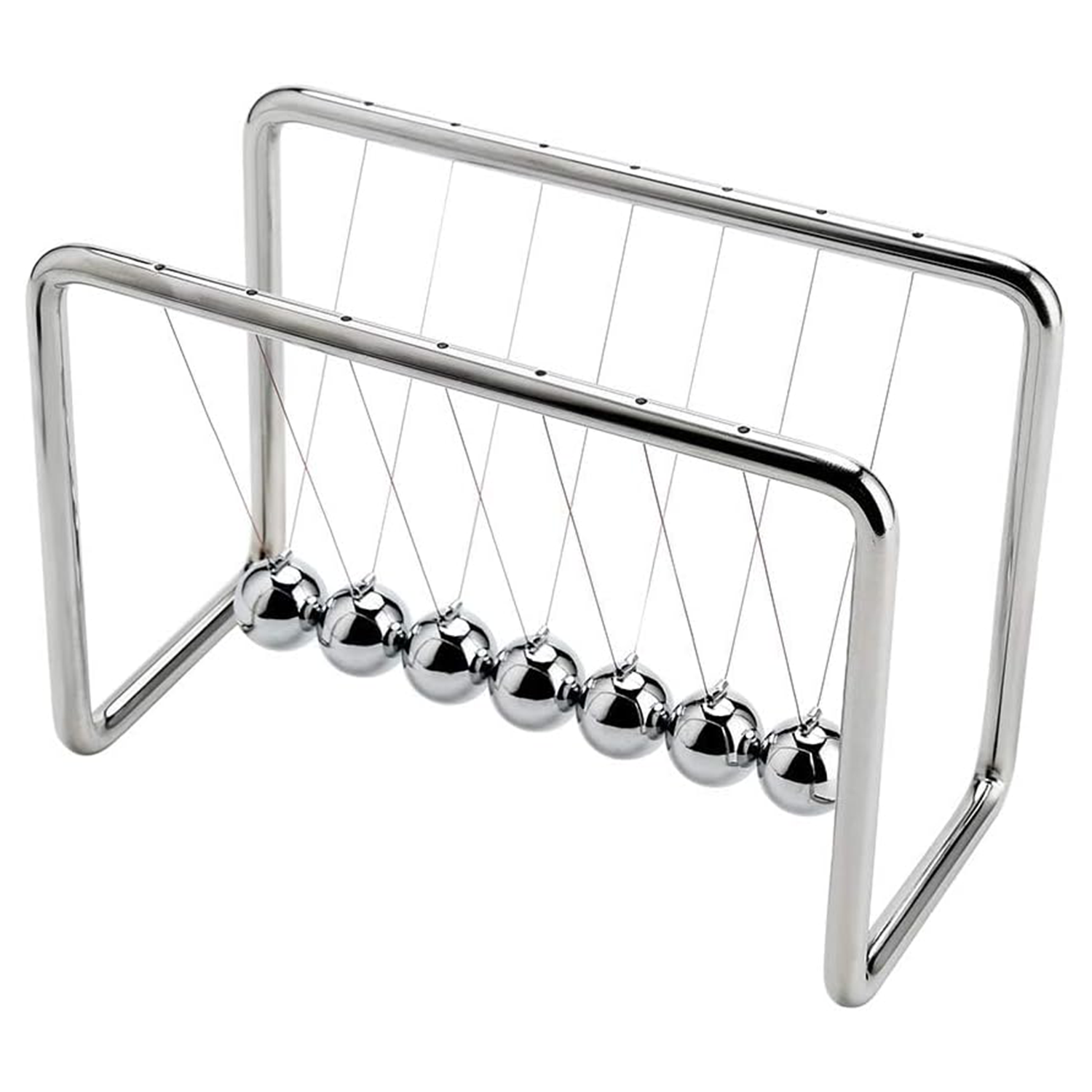 Watch the smooth, rhythmic motion as energy transfers through the steel balls—an engaging visual of Newton’s Third Law.