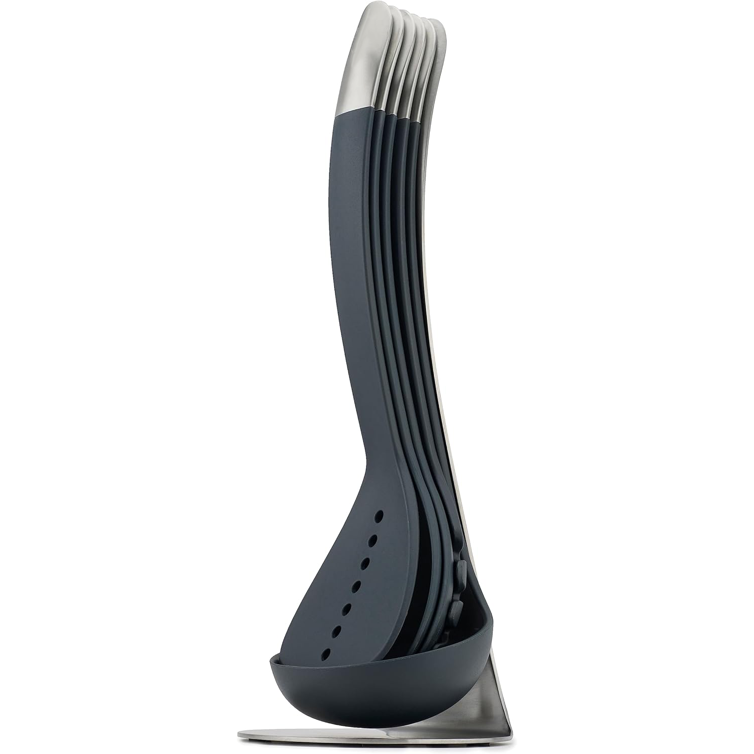 Includes slotted turner, spaghetti server, slotted spoon, solid spoon, and ladle.