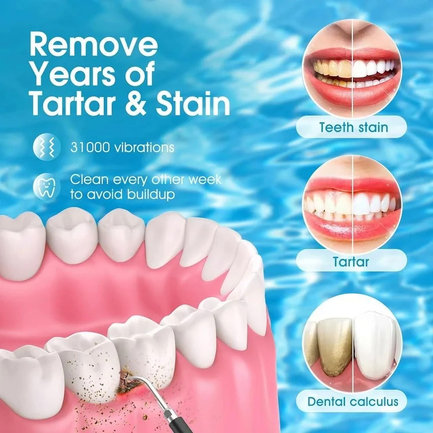 This professional ultrasonic dental cleaner helps remove plaque, tartar, stains, and bad breath effectively. With multiple cleaning modes and a built-in LED mouth mirror, it provides a safe and convenient way to maintain oral hygiene at home.