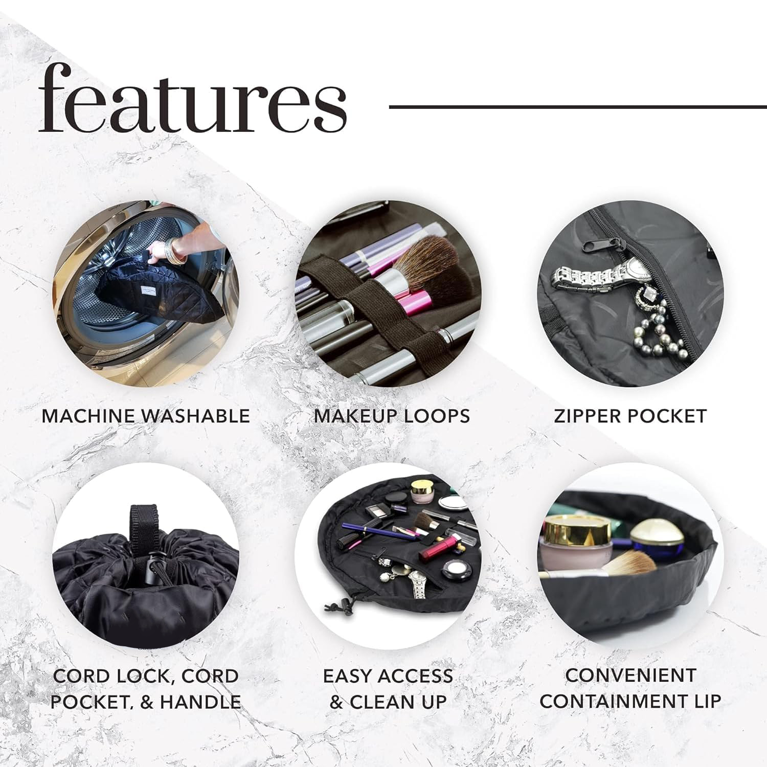This drawstring cosmetic bag makes storing and accessing your makeup effortless. With a quick pull of the cord, it neatly secures your items, perfect for travel or daily use.