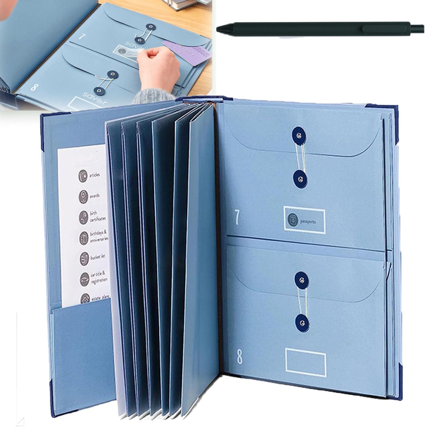 This expandable file organizer features structured, expandable pockets designed to easily hold A4 or 8.5x11-inch documents. Perfect for office, school, or home use, it keeps your files neatly organized while also accommodating small envelopes for passports, photos, gift cards, and other items.