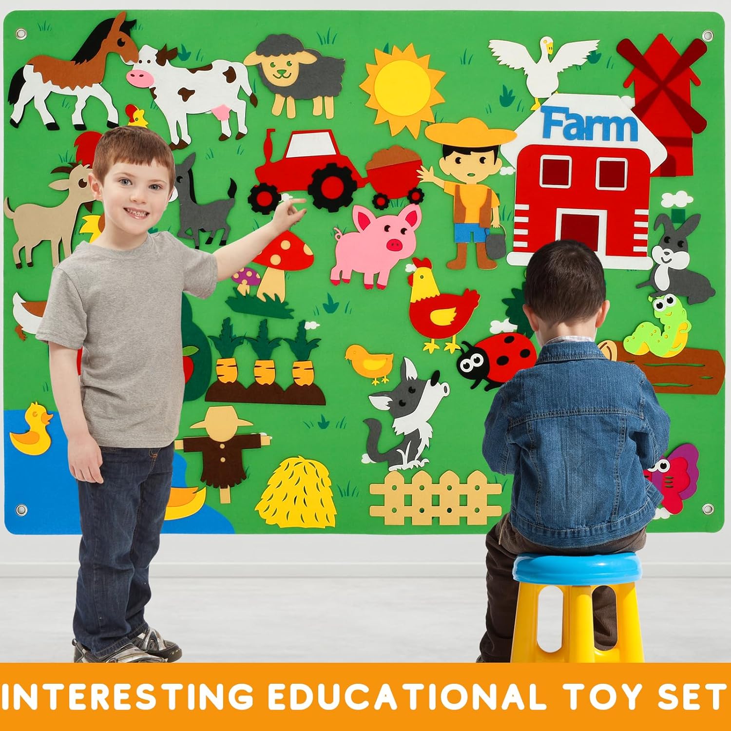 This felt activity play mat is designed to spark imagination and creativity for young children. Made of soft and durable felt, it comes with Velcro decorations that can be attached, removed, and rearranged, offering endless fun and learning.