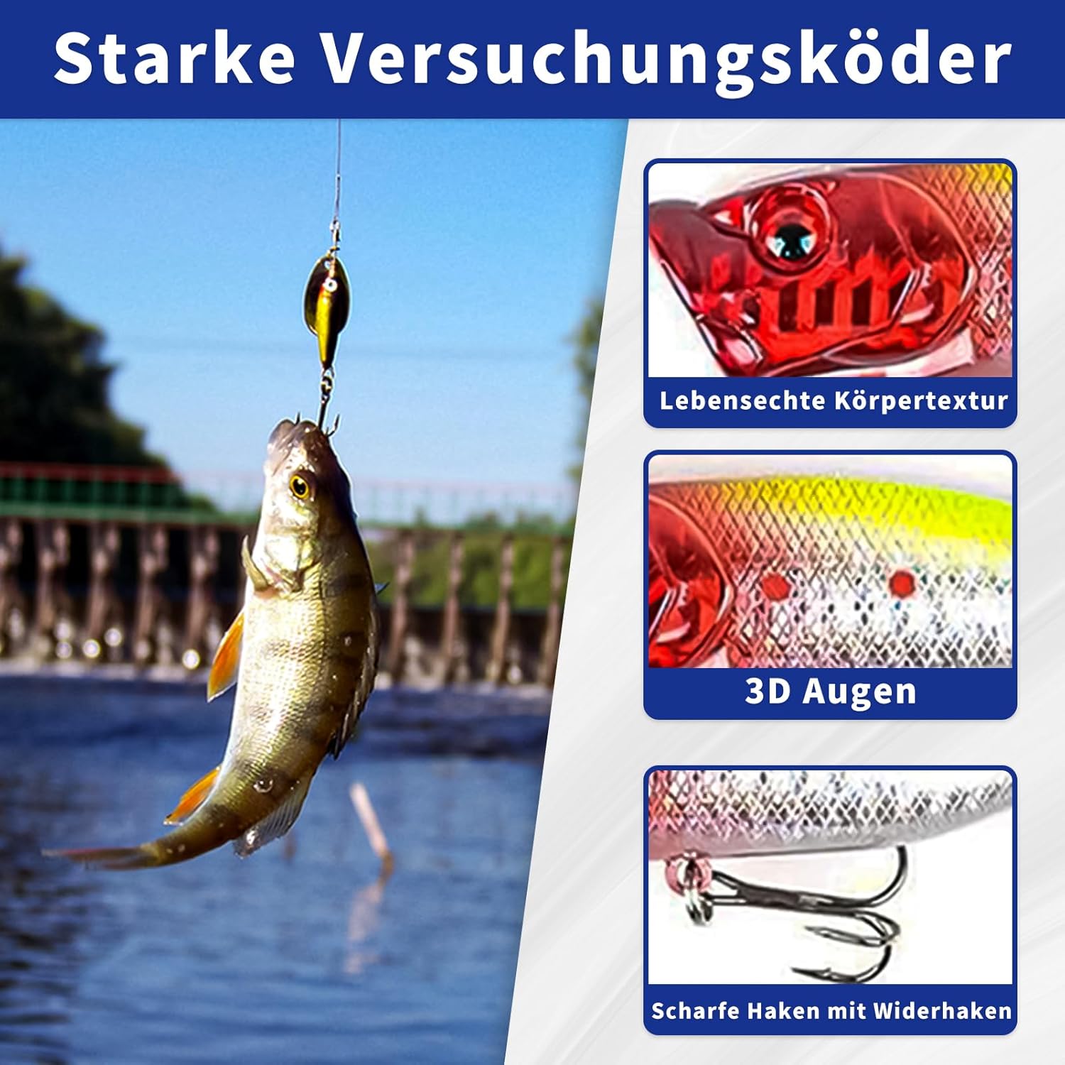 - 24 Different Lures (8 Hard Baits + 6 Soft Baits + 10 Spoons)