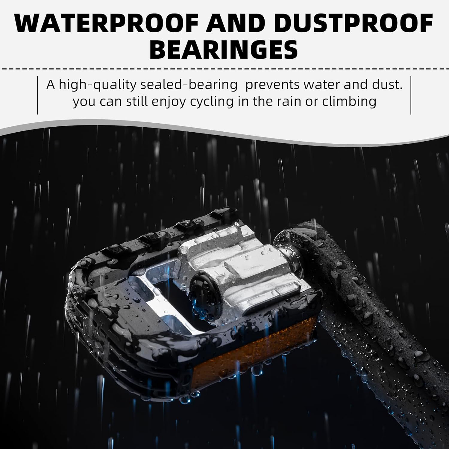 Made of CNC aluminum alloy, each pedal weighs only 0.42 lbs with sealed bearings for water and dust resistance.