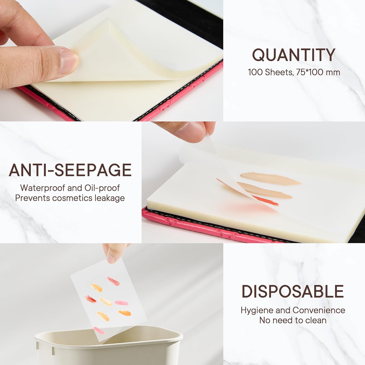 Includes 100 disposable palette papers to avoid messy hands and product waste.