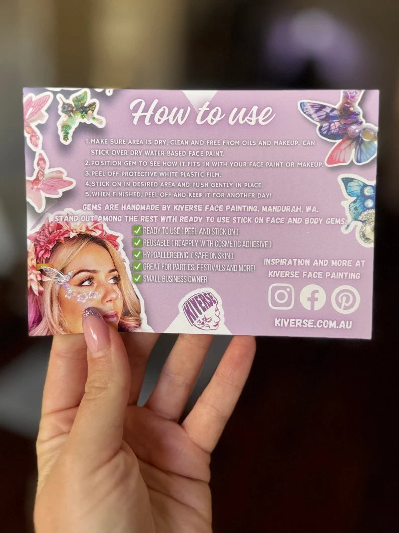 Shine bright with these ready-to-use glitter gem stickers! Perfect for festivals, parties, or cosplay, these face and body gems make you stand out effortlessly. Each set includes 3 unique gem designs that may slightly vary, ensuring every piece is special.