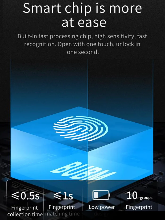 Advanced fingerprint recognition for secure, keyless access — ensuring your belongings stay protected wherever you go.