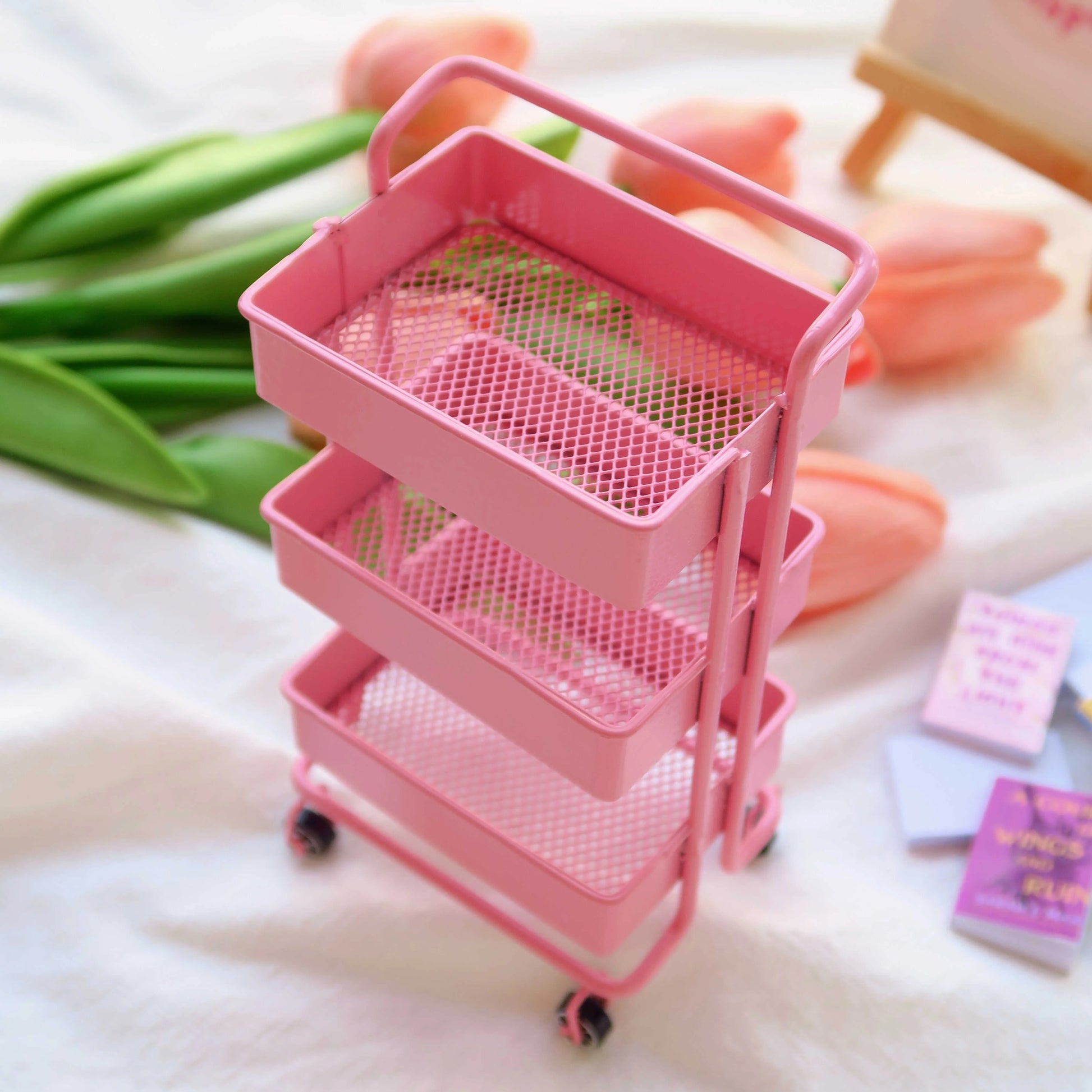 Mini DIY Three-Tier Storage Cart – Creative Scene Decor | Handcrafted Mini Display & Storage
