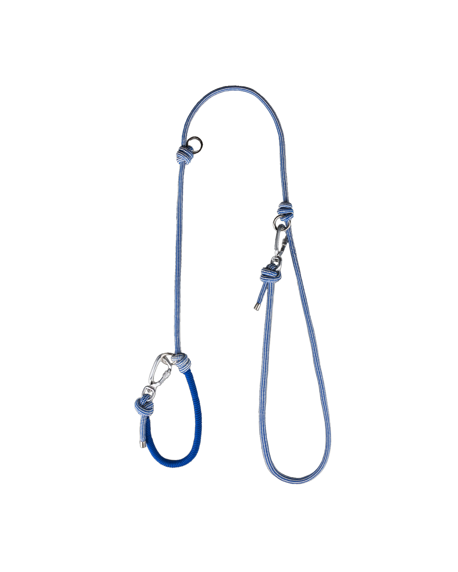 Four rings along the leash let you choose where to clip the carabiner — use it as a handle, wear it crossbody, attach to your waist, or secure it to a fixed object.
