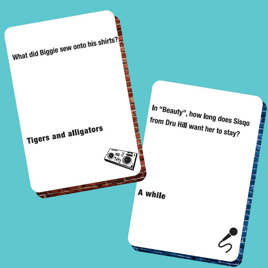 140 cards based on 90s & 2000s Hip-Hop and R&B hits, plus 10 exciting challenge cards.