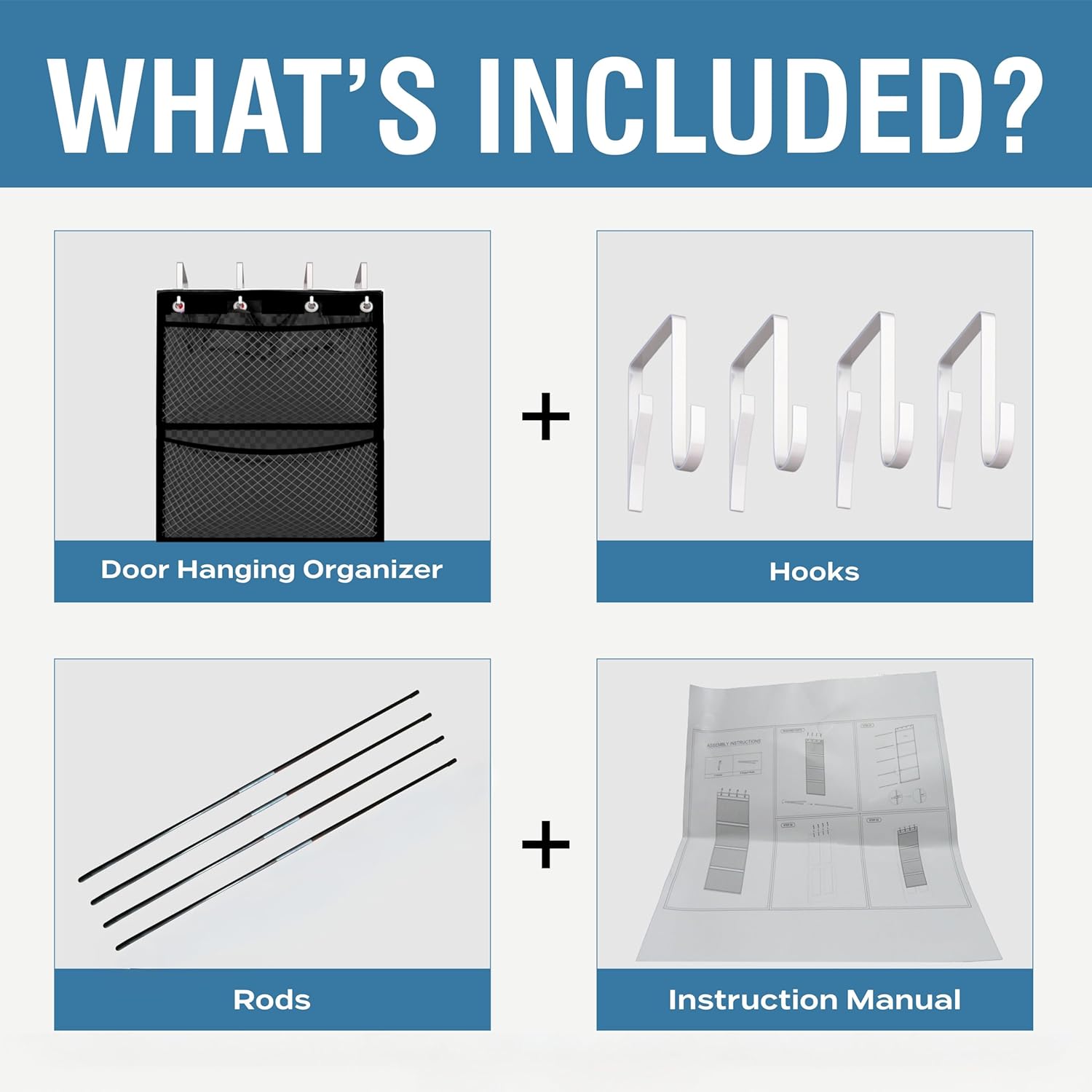 Features 4 spacious mesh compartments and sturdy metal hooks for secure hanging.