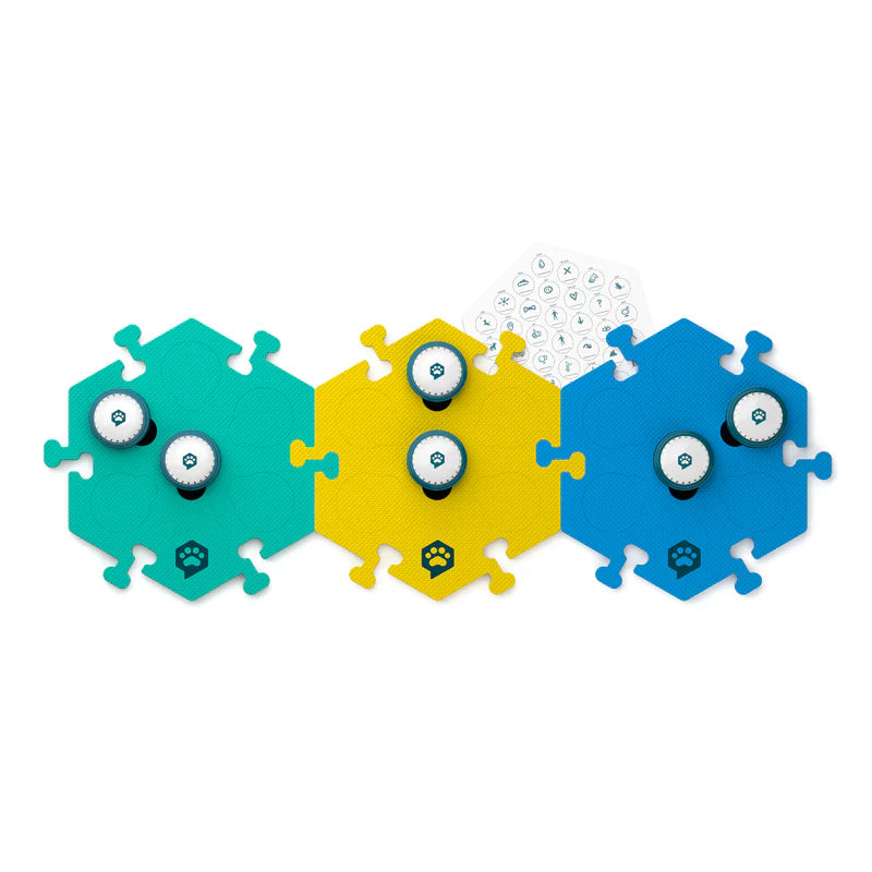 Start your pet’s communication journey with this all-in- Designed for easy training, this set includes 6 high-quality voice buttons with loud and clear sound, ensuring your commands can be heard even from another room. The kit also comes with HexTiles to keep buttons securely in place, pre-printed stickers for easy labeling, and batteries so you can begin right away. Ideal for both dogs and cats, it’s a fun and effective way to improve interaction and bonding.