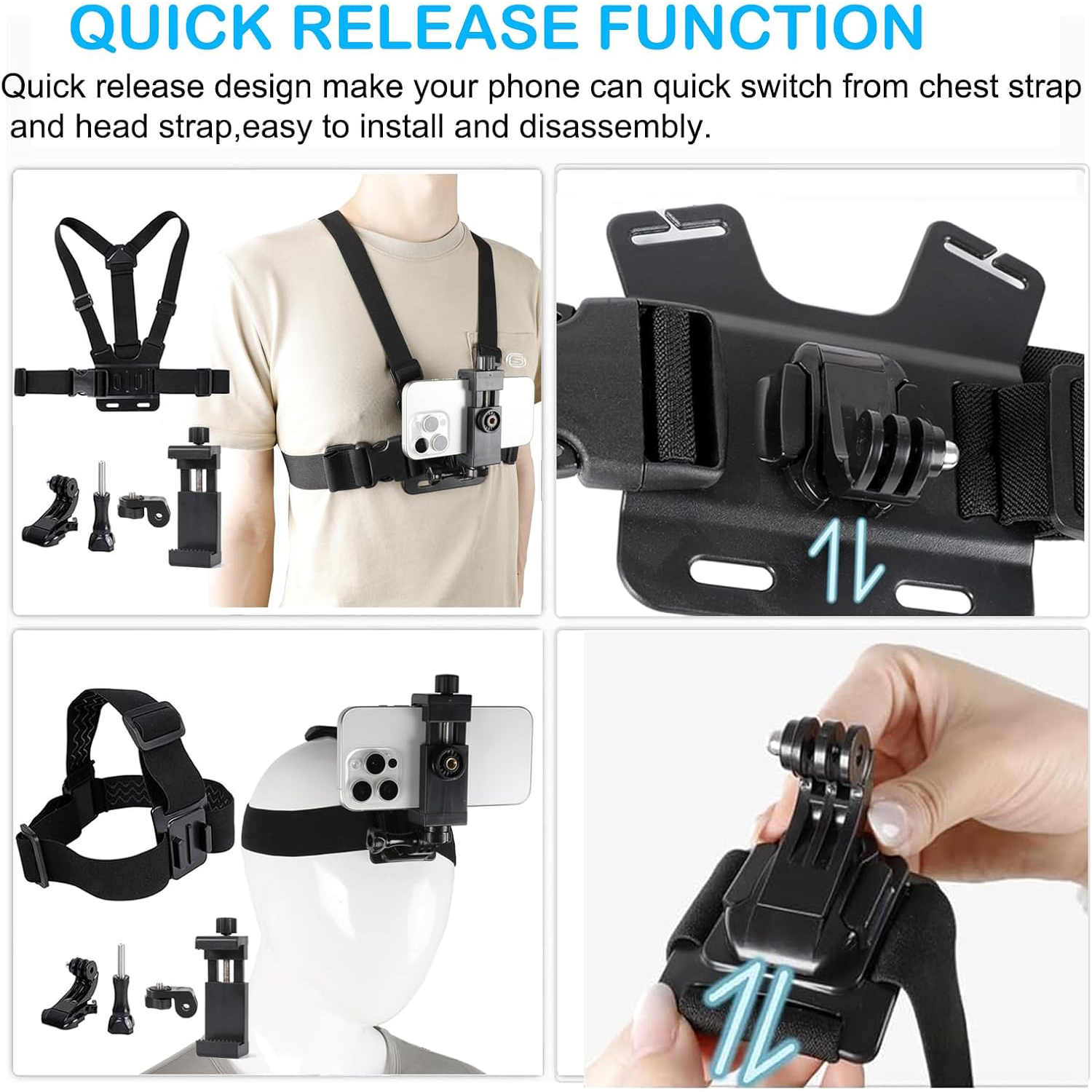 Phone Chest &Head Strap Mount Kit for POV/VLOG β Compatible with Action Cameras