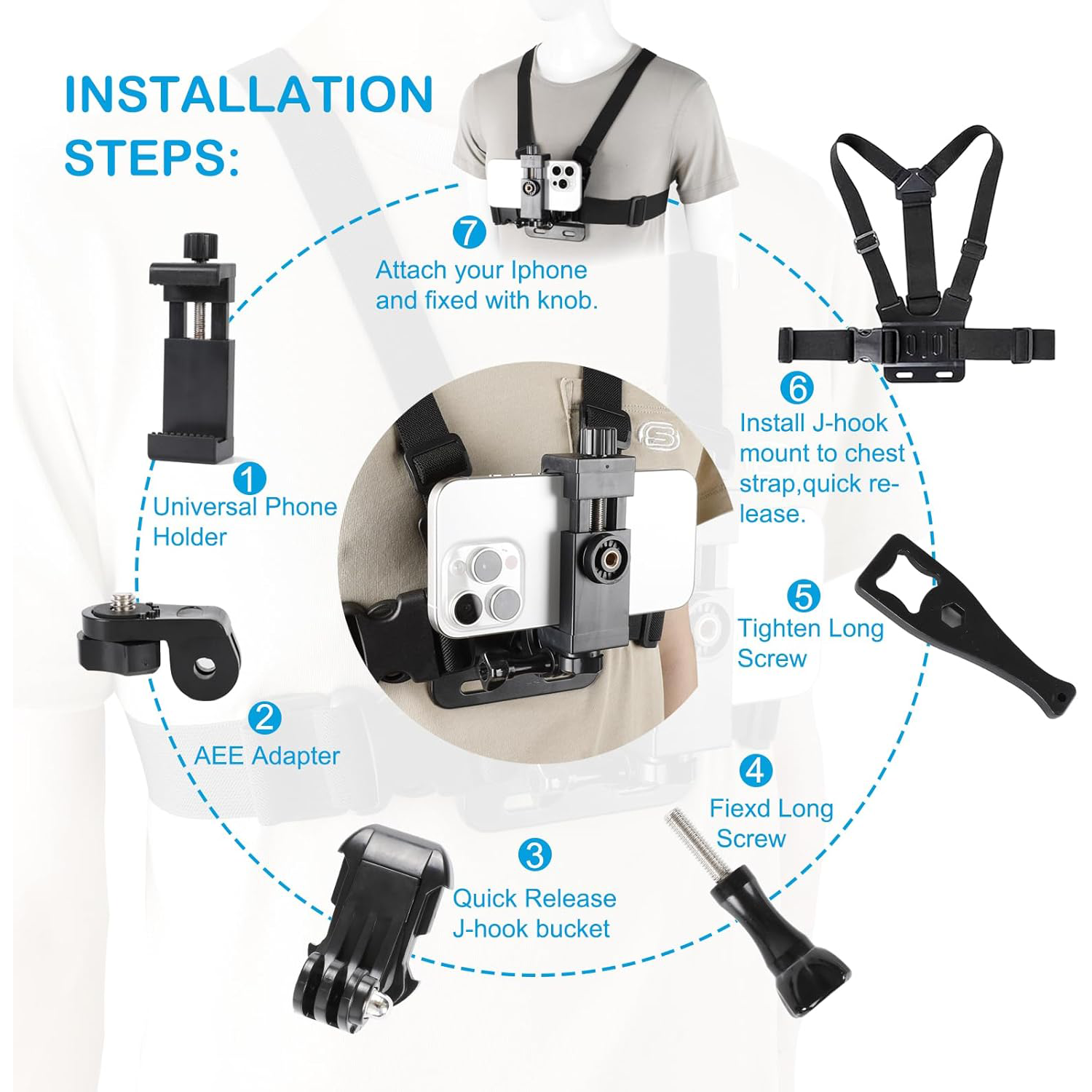 π₯ Phone Chest & Head Strap Mount Kit for POV/VLOG β Compatible with iPhone, Samsung, GoPro, DJI Osmo & More Action Cameras