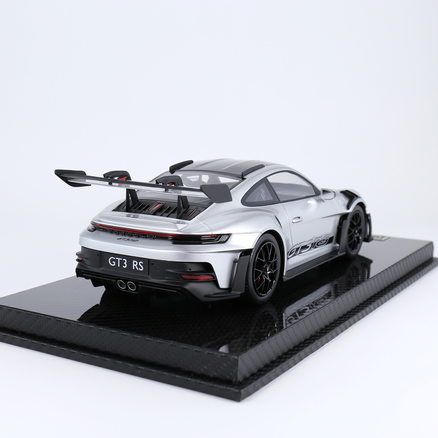 Porsche 911 GT3 RS 1:18 Scale Model β Silver Edition with Carbon Fiber Base