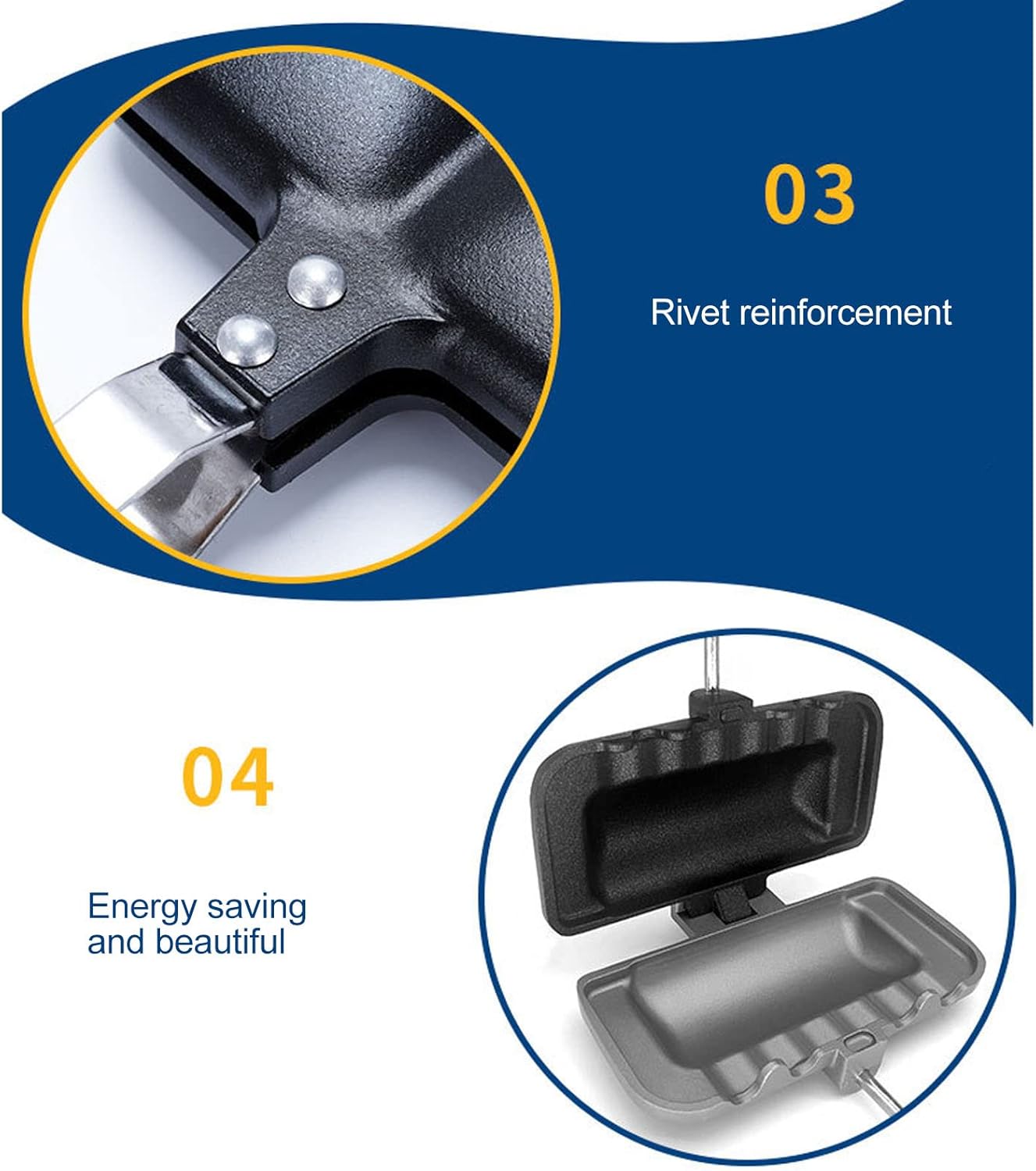 This portable double-sided frying pan combines convenience, practicality, and efficient cooking. Perfect for making eggs, paninis, pancakes, and toast. The detachable handle design makes it easy to store and carry, ideal for home kitchens, cafés, and restaurants.