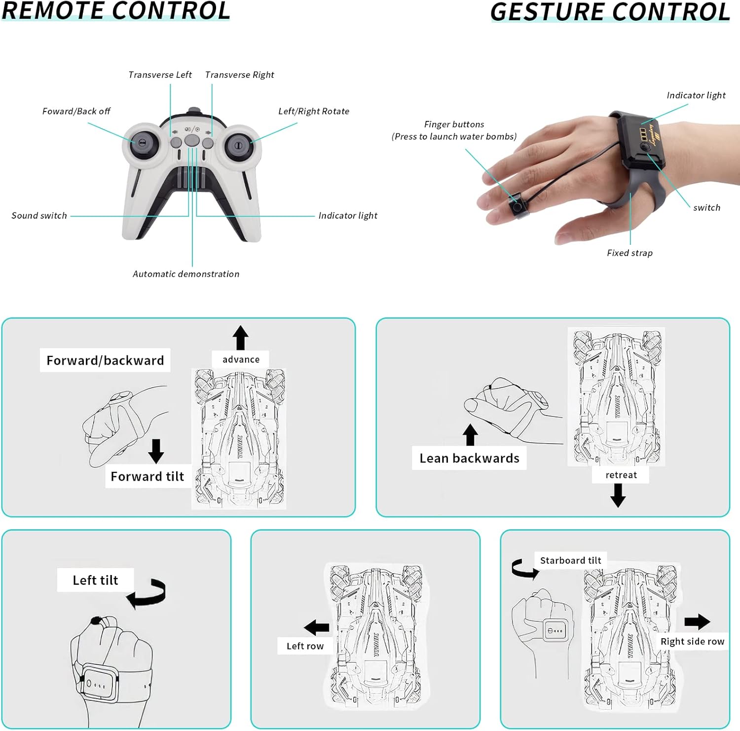RC Stunt Tank with Lights & Gesture Control – 360° Rotating Water Bullet RC Car