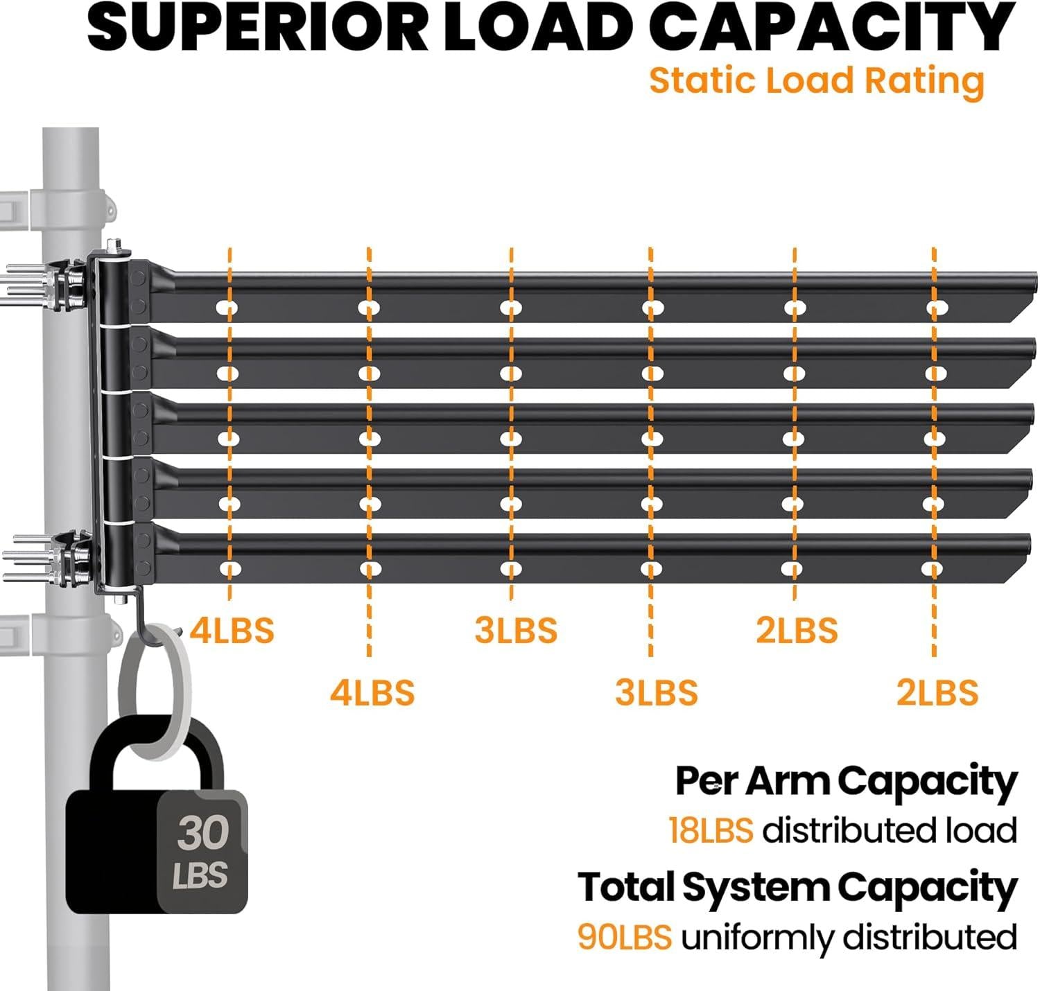 Three-layer protective coating, aluminum arms + iron brackets, and rust-resistant connectors withstand sun, rain, and long-distance travel. Supports up to 90 lbs.
