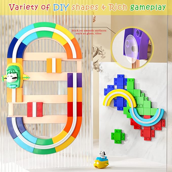 This 36-piece colorful building block race track set is designed for children aged 3 to 7. The vibrant track pieces create endless fun as kids twist and connect the blocks, allowing the electric car to smoothly race along the track. Perfect for parent-child interaction, it helps improve hand-eye coordination, color recognition, STEM skills, and logical thinking.