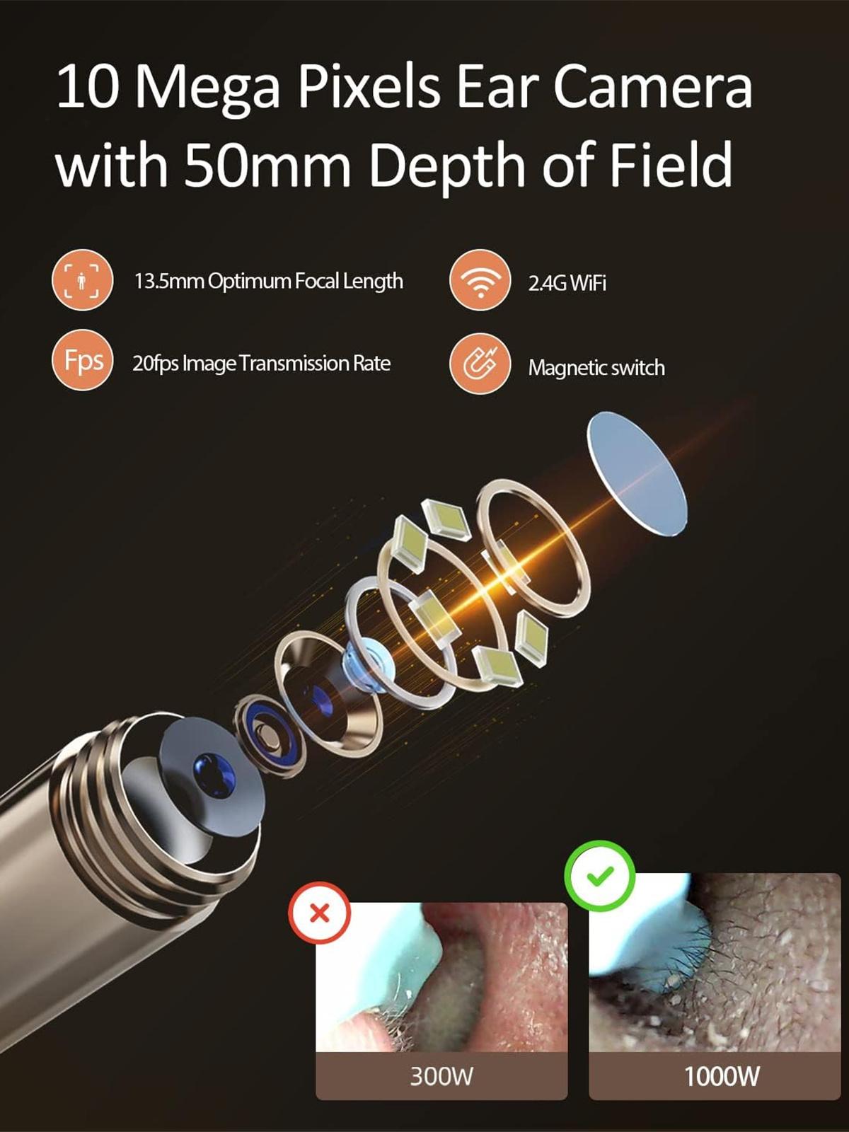Equipped with a 10MP camera and 6 LED lights, allowing you to clearly see and remove earwax safely without discomfort.