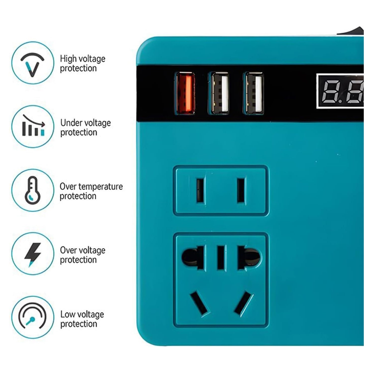 Smart Inverter with Lithium Battery – 21V to 220V AC Portable Power Inverter
