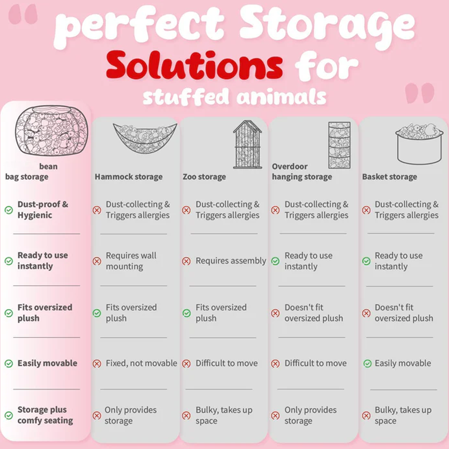 Holds dozens of plush toys or soft items, helping keep bedrooms and play areas neat and clutter-free.