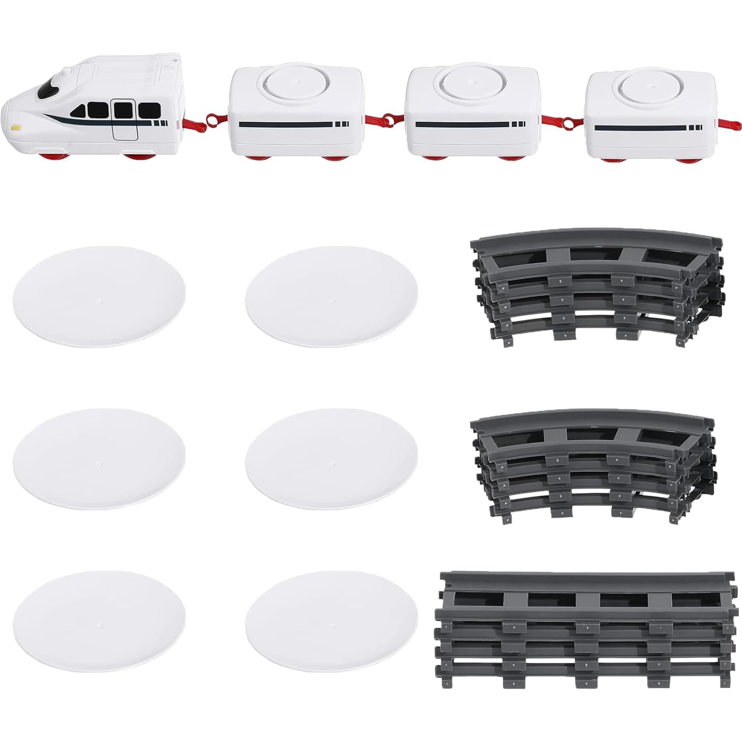 Includes 1 locomotive, 3 carriages, 6 trays, and 12 tracks for sushi or snacks.
