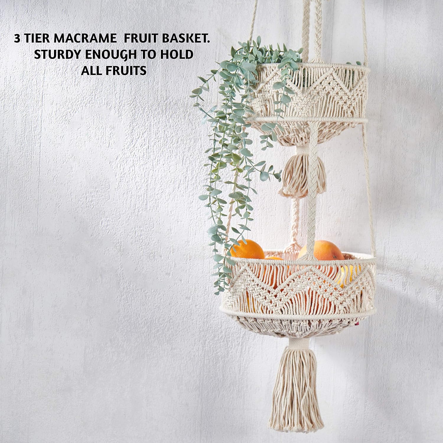 Three-Tier Hanging Fruit Basket – Bohemian Style Kitchen Storage Hanging Basket
