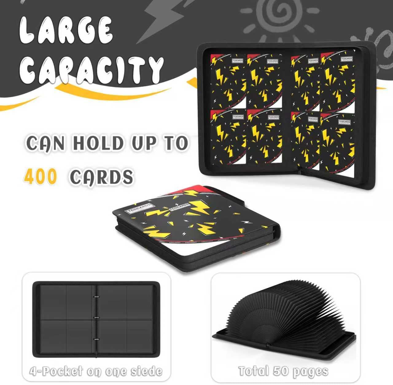 - Capacity: 400 cards (4-pocket pages × 50 sleeves)