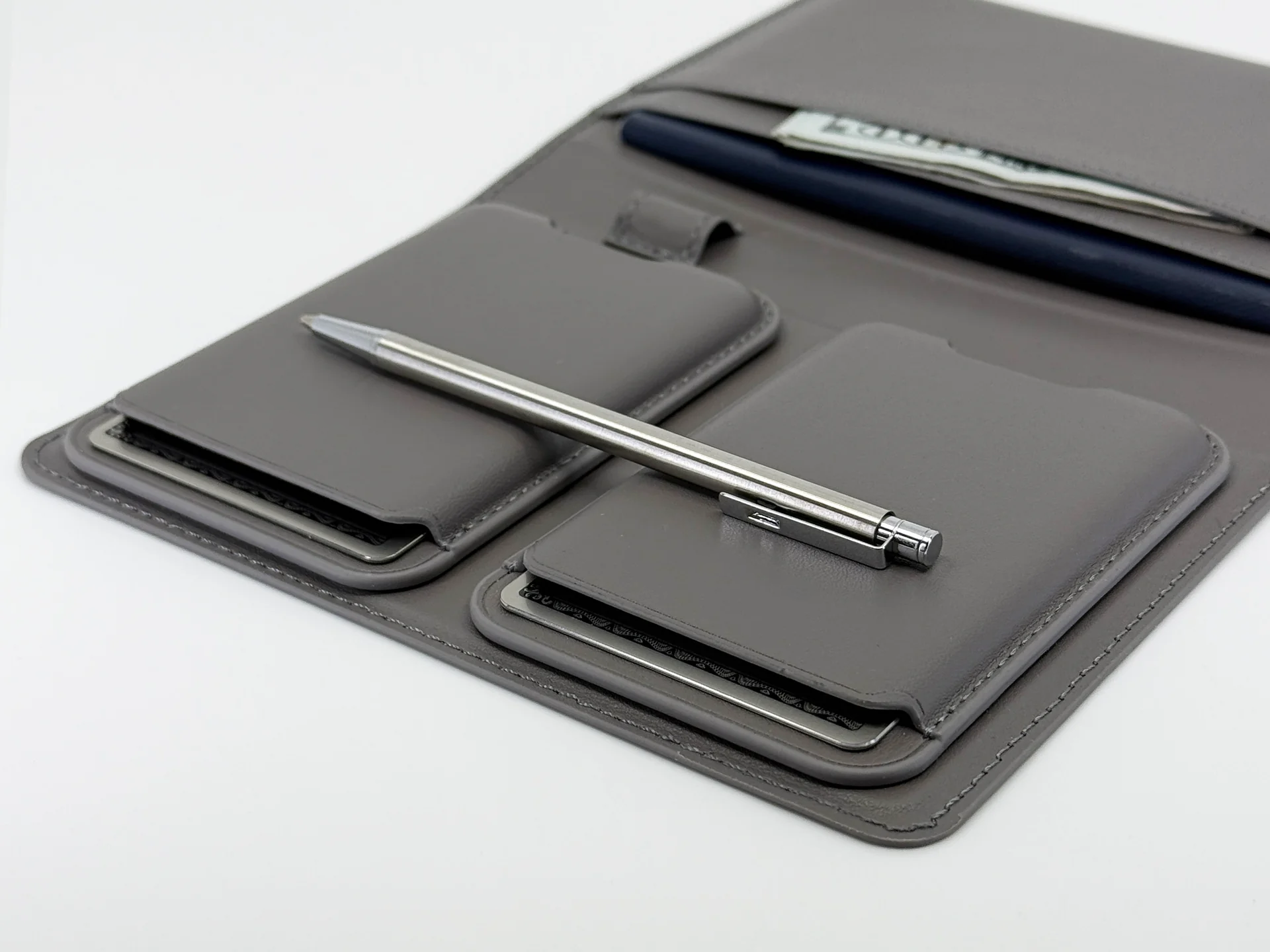 Comes with a stylish double-fold pen for quick note-taking and two magnetic clips for added convenience during your journey.