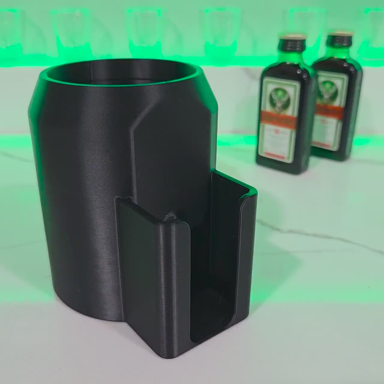 Holds a standard 12 oz can, plus compartments for your Zyn, shooter, Geek Bar, cigarettes, and more.