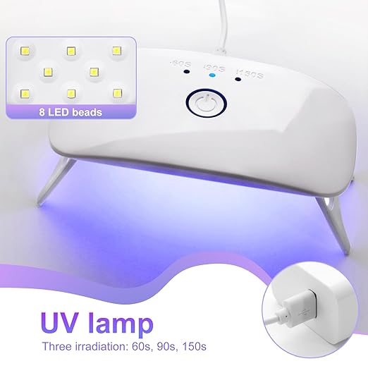 12W power with 8 high-energy UV LEDs for quick curing. Comes with a USB Type-C cable for easy, on-the-go use.