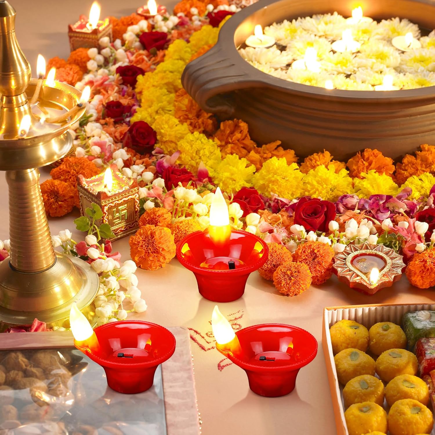 - 12 × Flameless LED Diya Candles
